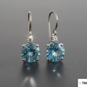 עגילי וו צמודים עם טופז כחול ויהלום עליון