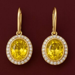 עגילי חישוק נפתחים עם ספיר צהוב אובלי והילה יהלומים