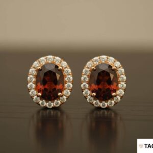 עגילים צמודים אובליים גרנט בהילה יהלומים